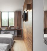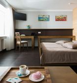 - Standard (16 кв.м.) — двуспальная или раздельные кровати, компактные номера для коротких и деловых поездок.
