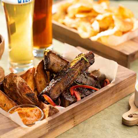 - Ресторан — авторская кухня в интерьерах с панорамным видом на лес